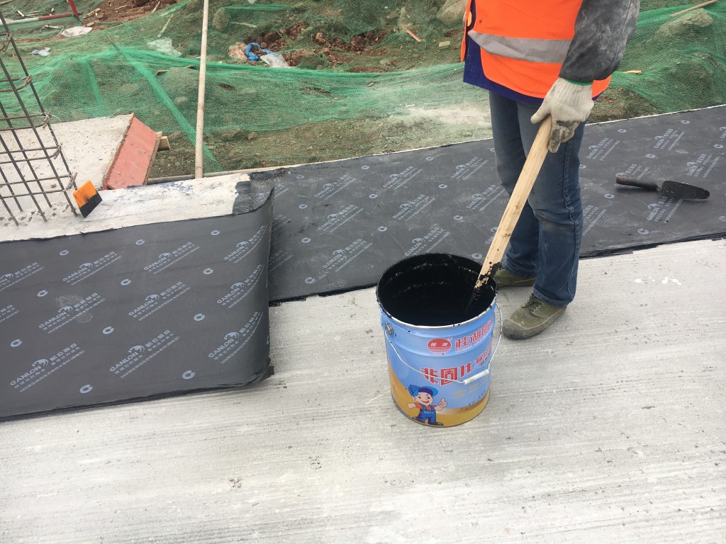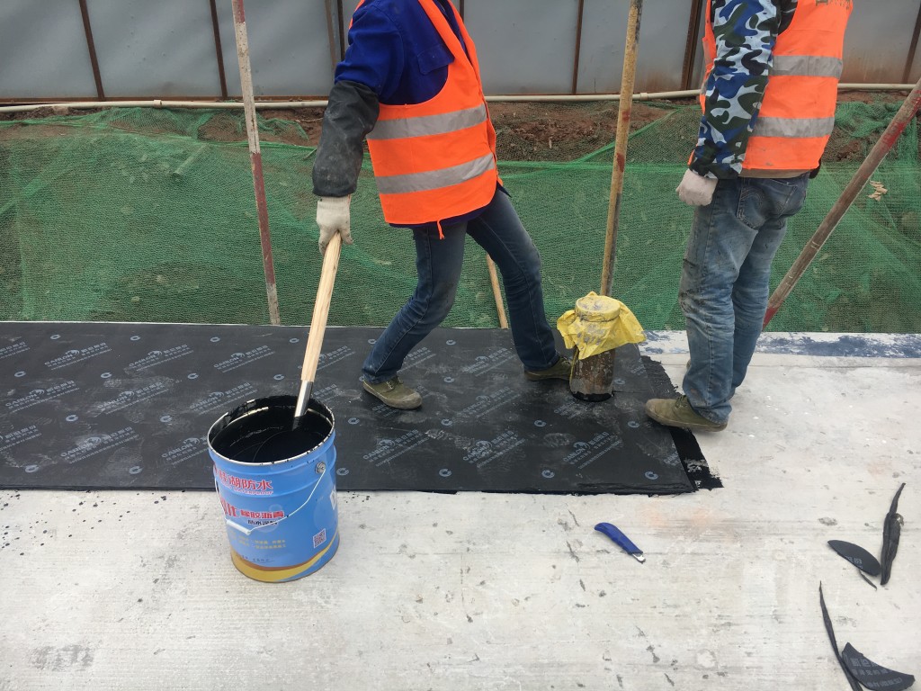 我公司承接的大英碧桂園地下室頂板防水施工,大英碧桂園地下室頂板防水采用非固化橡膠瀝青防水涂料和SBS改性瀝青防水卷材(阻根型)施工,此施工方法為新工藝,此工藝施工的防水效果很好,值得推廣。以下為我公司員工大英碧桂園地下室頂板防水施工現(xiàn)場展示。