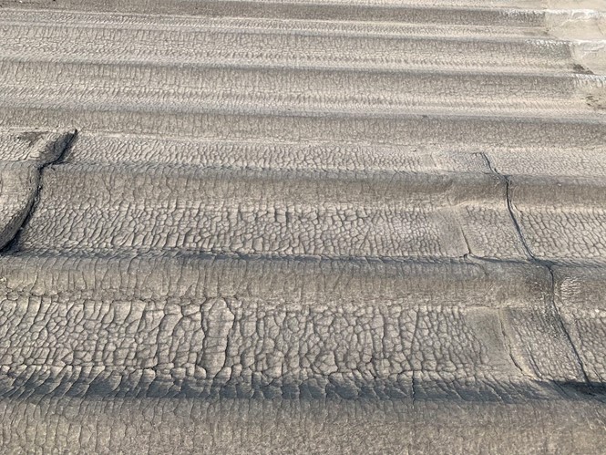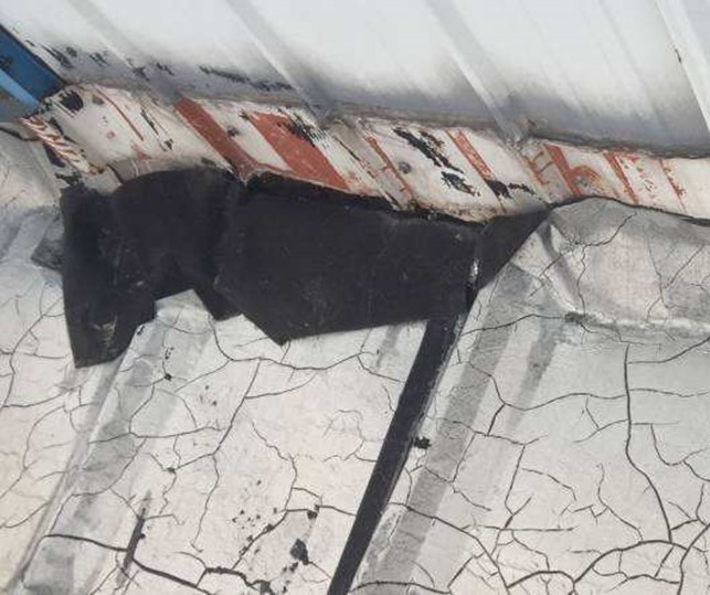 彩鋼頂表面采用SBS改性瀝青防水卷材施工的,兩年后改性瀝青防水卷材出現開裂情況嚴重