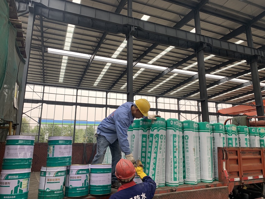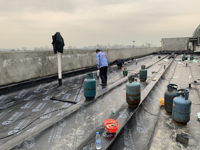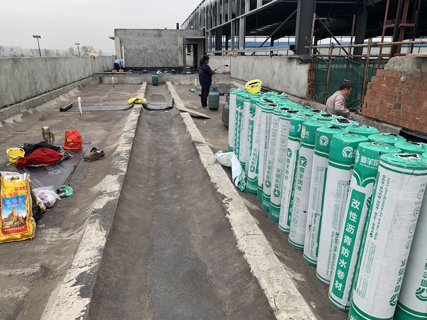 我公司承接的成都市郫都區(qū)康強(qiáng)三路的立航科技工業(yè)園的5#生產(chǎn)車間和高壓配電室的屋頂防水工程,按照設(shè)計(jì)圖紙要求,采用蜀羊的SBS改性瀝青防水卷材施工雙層防水卷材。