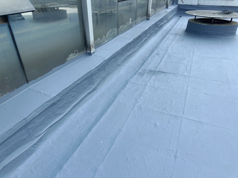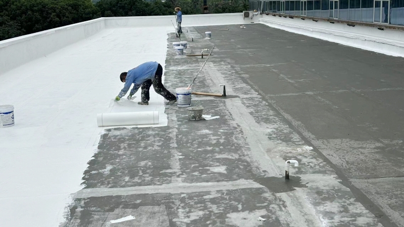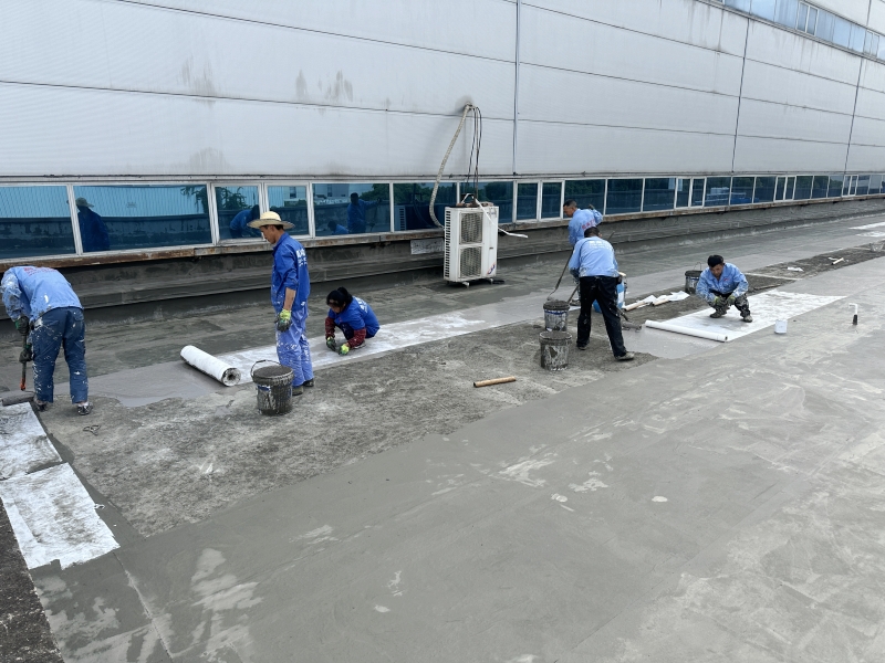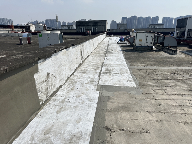 基層處理:首先,施工團隊對屋頂表面基層進行了徹底的清理,確保無灰塵、油污等雜質,為后續防水層施工打下堅實基礎。針對基層表面的局部不平整和翻砂現象,進行了砂漿修補和涂刷混凝土液體硬化劑處理,有效增強了基層的強度和穩定性。